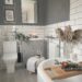 This entryway seamlessly blends a gallery wall with functional design. A curated mix of white frames creates a clean, cohesive look, while floating wood shelves add a practical yet stylish element. Hooks below the shelves provide storage for bags, and the bench offers both seating and organization. A bold potted plant adds vibrancy, tying the space together. This is an excellent choice for families needing both style and functionality in their entryway.