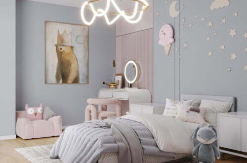 The combination of structured design and playful decor brings a cozy elegance to the space. For those who love personal storytelling in their interiors, this room offers a masterclass in balancing craftsmanship, color, and minimalist warmth.