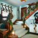 To recreate this holiday-inspired design, layer traditional winter elements—think vintage trucks, frosty greens, and metallics—against a warm backdrop. Use mirrors and warm white lighting to enhance the space’s brightness and cheer. It’s a charming, spirited setup perfect for bringing seasonal joy to your home’s first impression.